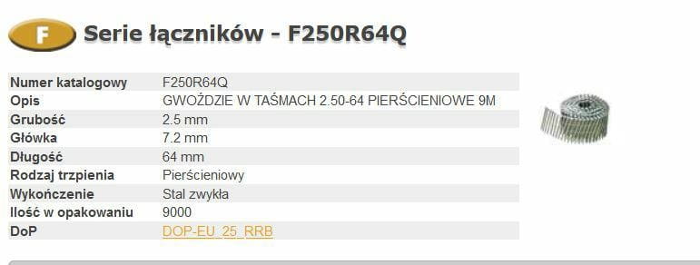 BOSTITCH GWOŹDZIE F 2,5-64 R Q