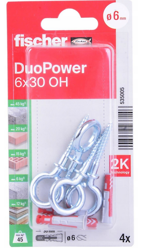 FISCHER KOŁEK DUOPOWER 6x30 Z HAKIEM OCZKOWYM /4szt.