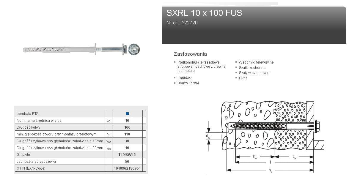 FISCHER KOŁEK ROZP.SXRL 10x100 FUS/50szt T40/SW13.