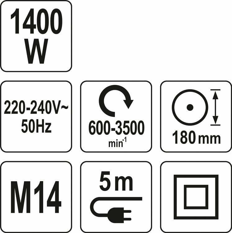 YATO POLERKA 1400W 180mm 600-3500 OBR/MIN M14