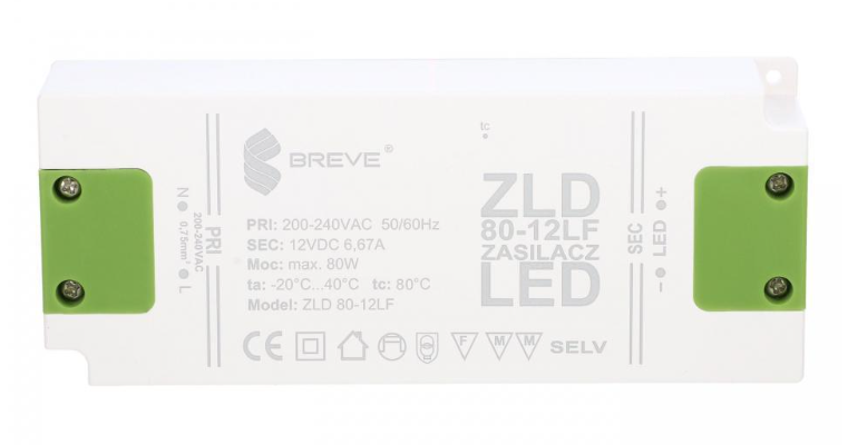 Zasilacz LED 12V DC 80W ZLD 80-12LF 6,6A 19712-9009