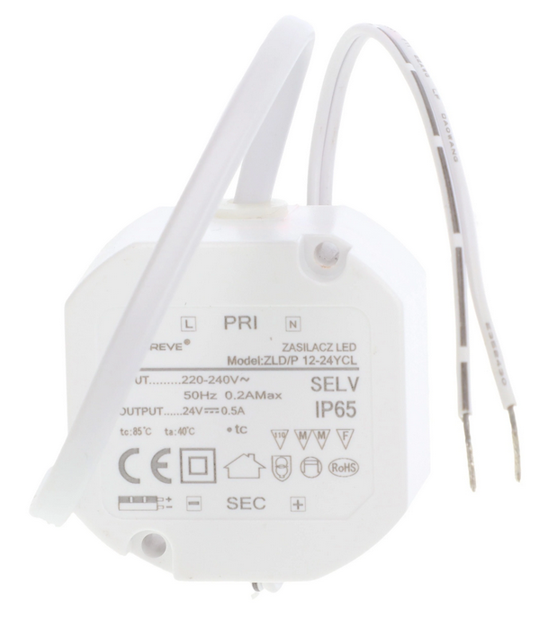 Zasilacz LED 24V DC 12W 0,5A IP65 /z zabezpieczeniami/ ZLDP 12-24YCL 19724-9019